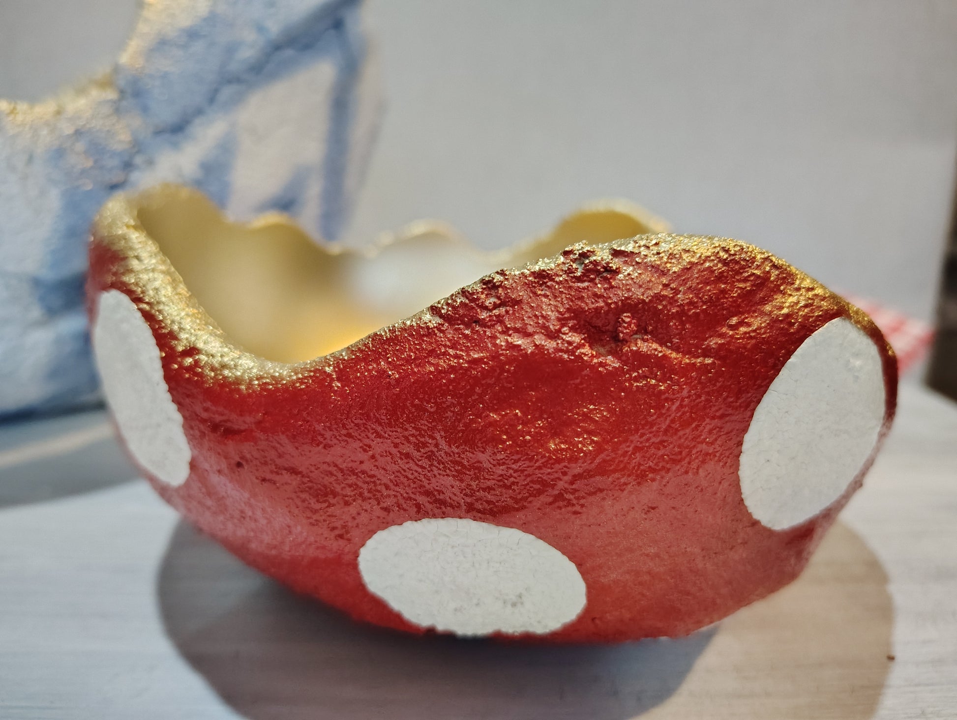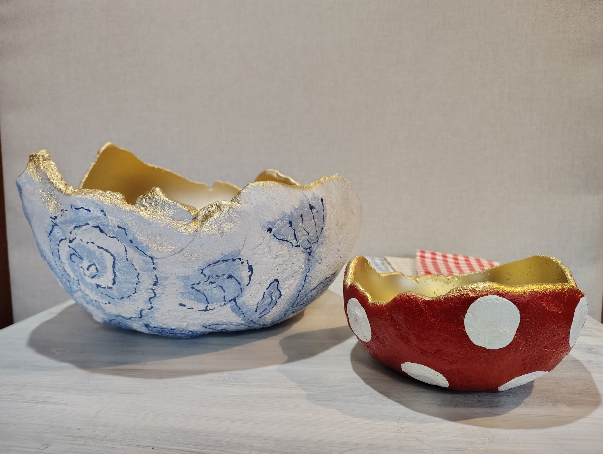 These unique "Freedom Edition" Concrete Bowl Set is a must-have for hosting during holidays like the 4th of July. The set includes a large 13.5 inch bowl and a small 7.5 inch bowl, both hand sculpted and hand painted with fun red and white polka dots and blue and white floral designs. Made with solid concrete, these bowls are both durable and stylish.